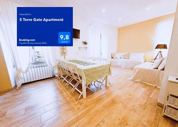 - ❓When is check-in and check-out at this spacious 5 Terre Gate apartment?At this spacious 5 Terre Gate apartment, guests can check in from 11:00 till 23:00, and check out until 10:00.